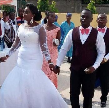 فساتين زفاف جديدة أفريقي مقاس كبير حورية البحر س س الرقبة يزين مطرز بالخرز زر الظهر الدانتيل MW509