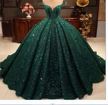 Vestidos de Quinceañera Brillantes con Hombros Descubiertos de Lujo para Fiesta de Cumpleaños Vestidos De 15 Años Verdes Brillantes para Graduación MQ455