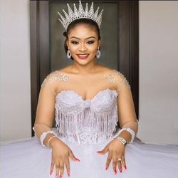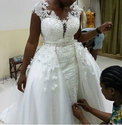 2025 אפריקה חדש בתוספת שמלות בתולת ים שמלות כלה או עטיפות תחרה צווארון עטוה כפתור בחזרה לשמלות כלה mw509