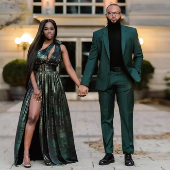 שני כפתורים תלבושות Slim Fit טוקסידו חתן לנשף בלייזר 2 חתיכה כהה ירוק חתונת חתן גברים חליפות MS106