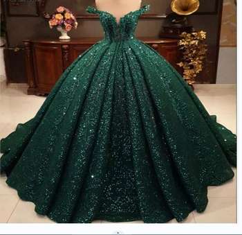 オフショルダーきらびやかな成人式ドレス高級誕生日パーティーVestidosDe15 AnosシャイニーグリーンウエディングガウンMQ455