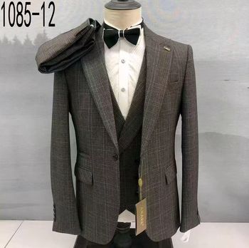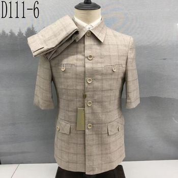 Hoge Kraag Kaki Tuniek Raster Heren Pak Slim Fit Vier Zakken Business 2 Stuks Vijf Knopen Smoking Heren Bruiloft Mannen Pakken D111