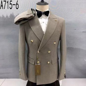 Slim Fit haki çift göğüslü şerit iki yarıklar iş 2 parça Set erkekler damat düğün iş elbisesi A715