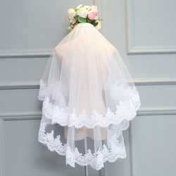 Toptan en kaliteli kısa dantel iki katmanlı fildişi 1.5 metre genişlik 1.5 metre kısa dantel peçe gelin tarak ile MSVB3