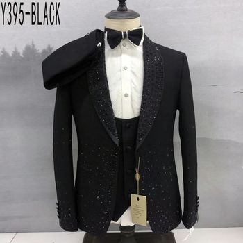 Bộ vest cưới nam bán buôn kiểu dáng ôm body, 3 mảnh, chất liệu bóng, dành cho đám cưới, công sở, chú rể, màu đen, mã MSS700