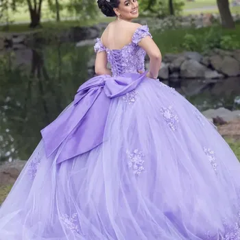 Appliquesd mới prom vestidos de 15 chính thức công chúa bên bóng áo ngọt ngào 16 Lilac dài tay áo quinceanera Dresses mq676