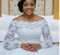 Morili trắng tùy chỉnh appliqued đính cườm ren sưng húp bóng phi Gown áo cưới giá rẻ mwa487